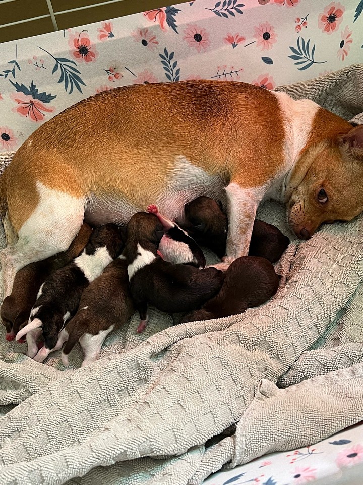 Olive delivered 4 beautiful boys . Not sure on coat length yet . All will be available. This was olives last litter . She is retiring. Olive is available for adoption. Please go to my retiring dog page for more information on Olive.